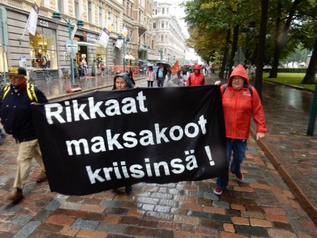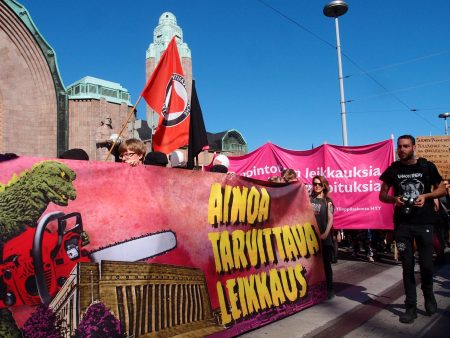 Lauantaina tuhannet ihmiset marssivat Joukkovoiman riveissä SOS-hallituksen leikkauspolitiikkaa vastaan. Tyytymättömien armeija oli saapunut Helsinkiin eri puolilta Suomea.