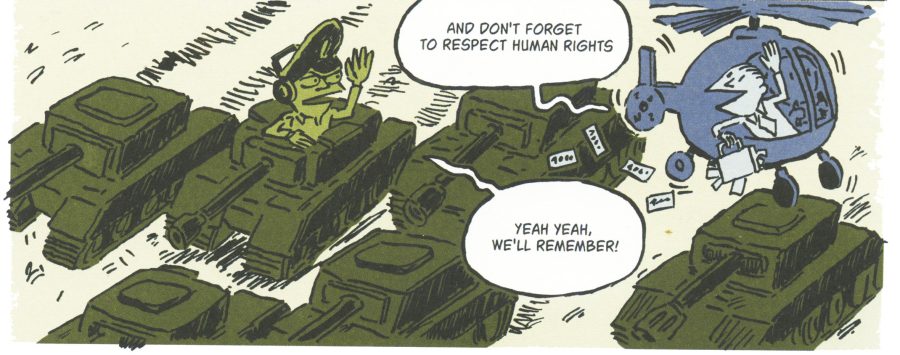 Väistämättä Europe’s deadly trade: Arms export onkin vain tiivistelmä hyvin monimutkaisesta aiheesta, mutta sellaisenaan se antaa yllättävän hyvät eväät ymmärtää tämänhetkisen asekaupan ongelmia. Voisi kuvitella, että asekaupan suurimmat ongelmat liittyisivät nimenomaan laittomaan asekauppaan, mutta jos sarjakuva jotain osoittaa, niin sen että laillinen ei vielä tarkoita eettistä.