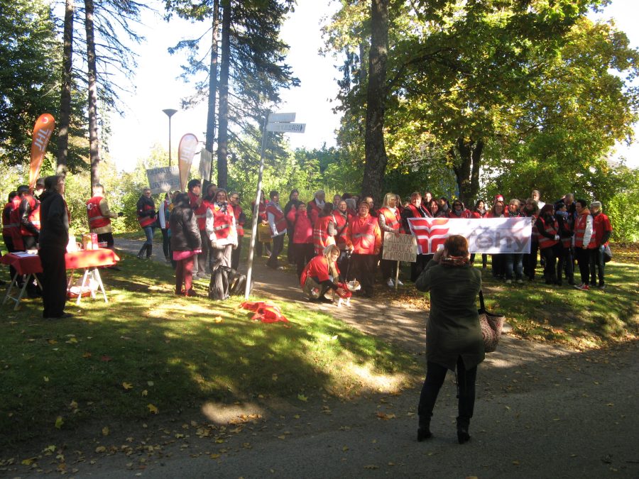 Kellokosken sairaalan henkilökunta järjesti mielenosoituksen sairaalan puolesta 7. lokakuuta.