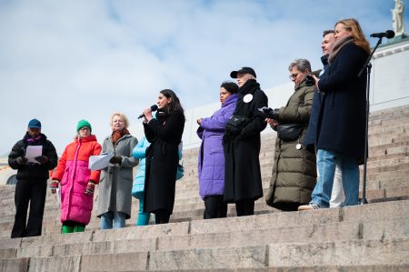 Sakset seis! -kampanjana jo talvella tutuksi tullut Suuri kulttuuriadressi luovutettiin päättäjille Helsingissä 5. huhtikuuta. Adressi ehti kerätä 103 006 allekirjoitusta.