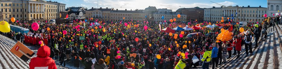 Helsingin Senaatintorilla torstaina 1. helmikuuta 2024 pidettyyn SAK:n ja STTK:n mielenosoitukseen osallistui pitkälti yli 10 000 ihmistä. Samaan aikaan järjestettiin poliittisia lakkoja monilla aloilla. Uusia lakkoja on laajasti myös samalla viikolla, kun tämä Tiedonantaja menee painoon.