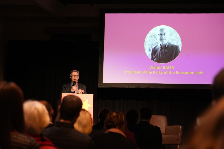 Loppupuheenvuoron piti Euroopan vasemmiston puheenjohtaja ja eurovaalien kärkiehdokas Walter Baier. Kuva: Euroopan vasemmisto