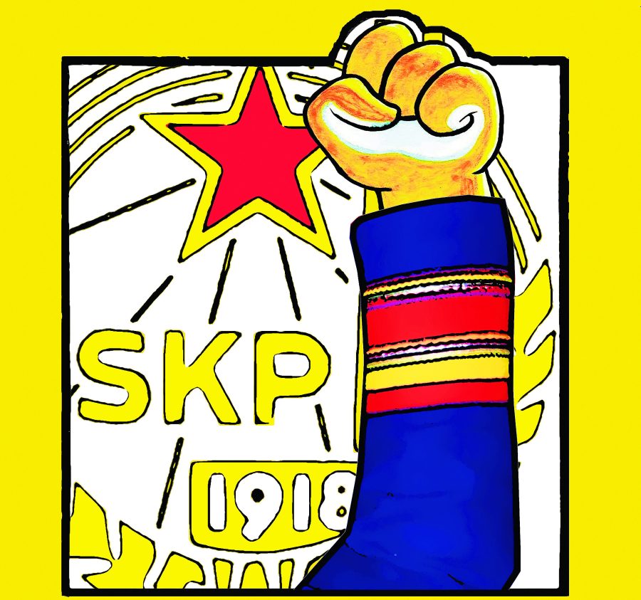 Suomen kommunistisen puolueen tämänvuotinen vappujuliste on kollektiivin käsialaa. Julisteen pohjalta on tehty myös SKP:n vappumerkki.