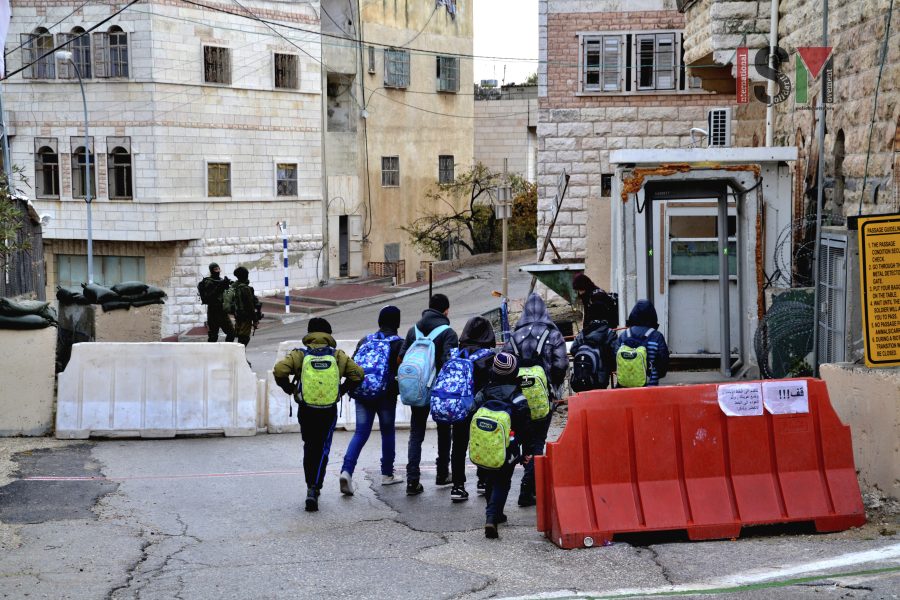 Palestiinalaiset koululaiset israelilaisella tarkastuspisteellä. Kuva: International Solidarity Movement_CC_ASA