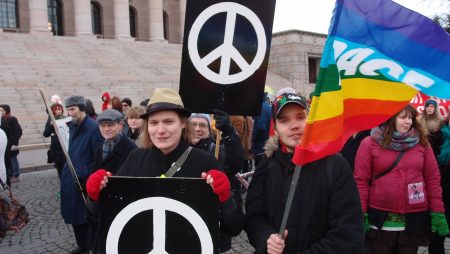 Pohjois-Karjalan ja Pohjois-Savon rauhanystävät protestoivat maanantaina 9. toukokuuta Yhdysvaltojen ilmavoimien hävittäjien saapumista Rissalaan harjoittelemaan 9.-20.