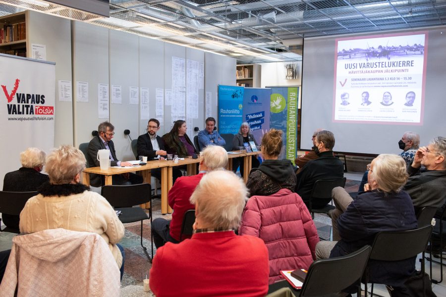 Miten aseiden varaan lasketusta turvallisuudesta tulisi päättää? Mihin hävittäjähankinnat vievät Suomea? Uhkaako meitä uusi ja kallis asevarustelukierre, vaikka nyt tarvittaisiin panostuksia ympäristökriisin ratkaisuun? Vapaus valita toisin -yhdistys järjesti näistä kysymyksistä hybridimuotoisen keskustelutilaisuuden 5.3.2022. Tilaisuudessa olivat alustamassa professori Heikki Hiilamo, kansanedustaja Kimmo Kiljunen, toiminnanjohtaja Laura Lodenius ja väitöskirjatutkija Kari Paasonen. Keskustelua veti päätoimittaja Arja Alho.
