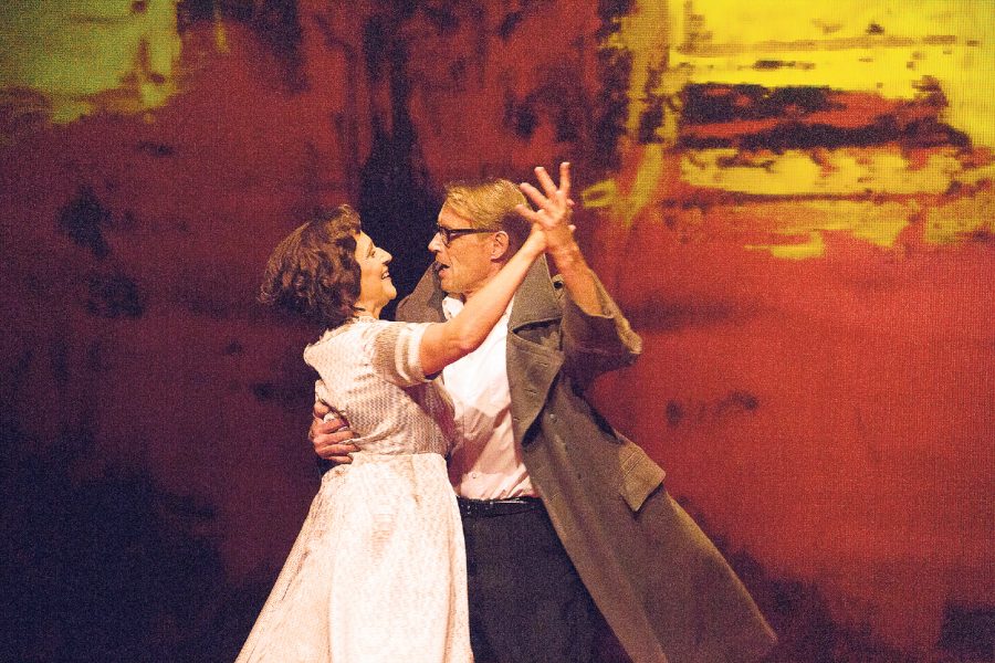 Saran ja Erikin lavastus, videot ja puvut ovat Reija Hirvikosken suunnittelemat. Pidin kovasti 50-luvun kirjahyllyistä ja muusta yksinkertaisesta lavastuksesta, vallankin kun Eero Auvisen valot toimivat todella tehokkaasti. Ne luovat vahvoja leikkauksia koko näytelmän kaareen ja kantavat ohjausta parhaalla tavalla.