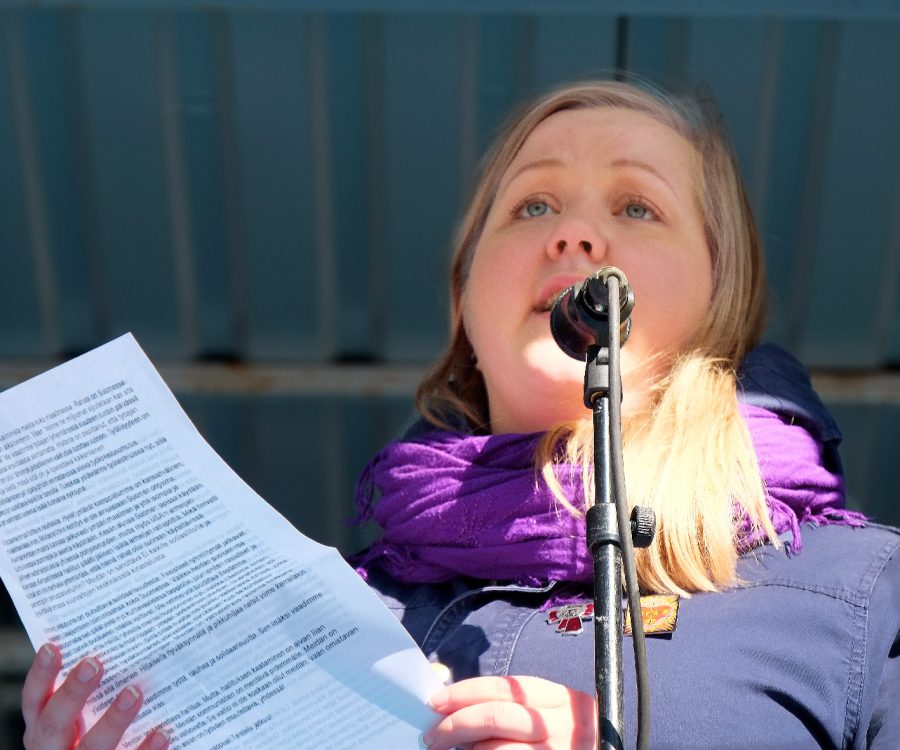 Helsingissä puhunut SKP:n pääsihteeri Petra Packalén korosti myös tarvetta protestille.